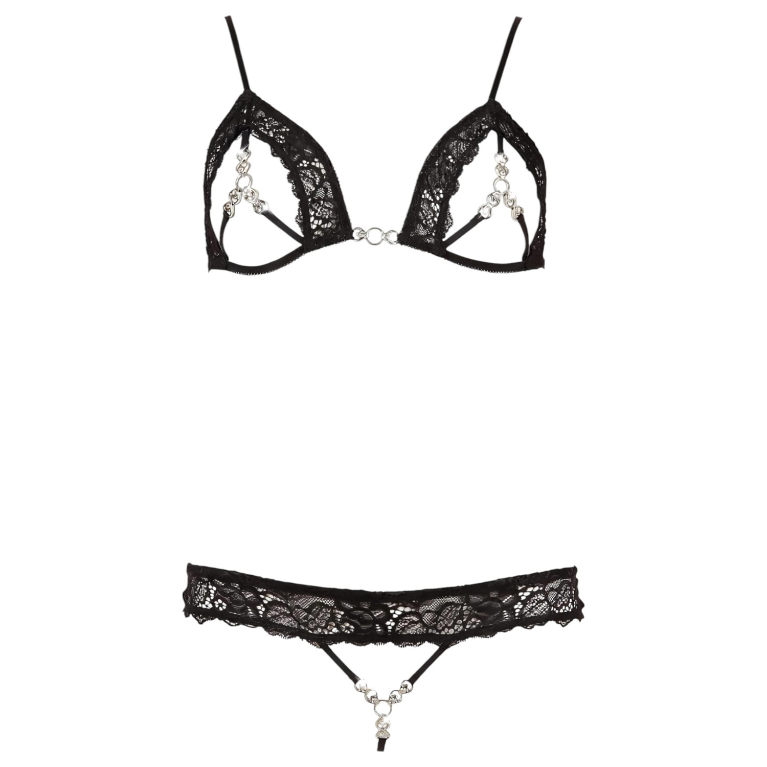 Zapeljivo drzno in elegantno čipkasto perilo s sijočimi diamantki – komplet Abierta Fina Extravagant zasleduje nepozabno predstavo!