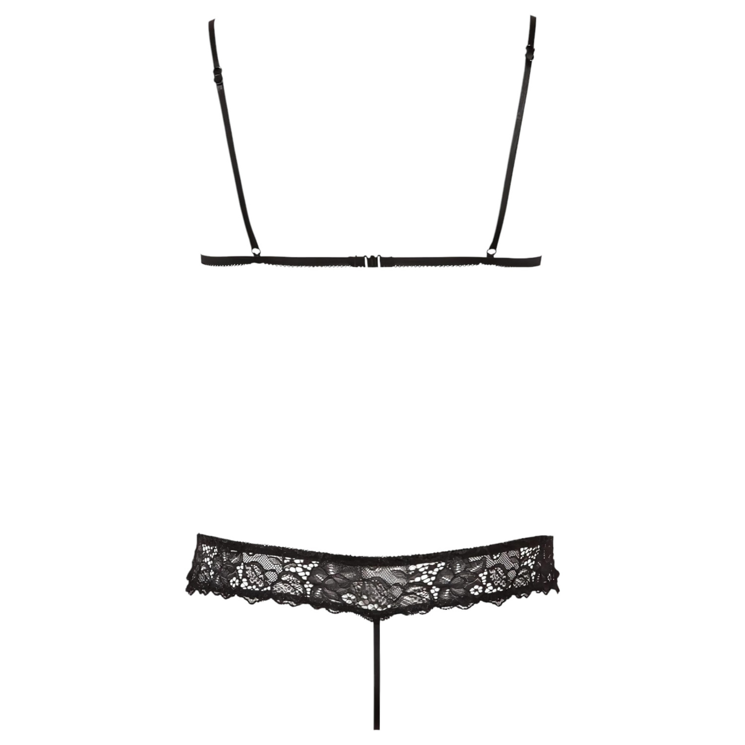Ta ekstravaganten črni čipkasti komplet združuje čutnost in luksuz ter vedno znova ustvarja osupljiv učinek.
