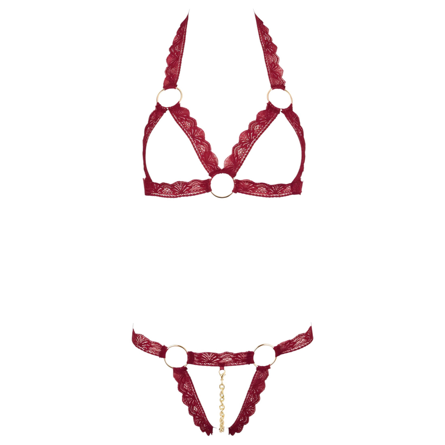 Mnenja Cottelli - kovinski obročasti, odprti modrček set (rdeč) - M/L