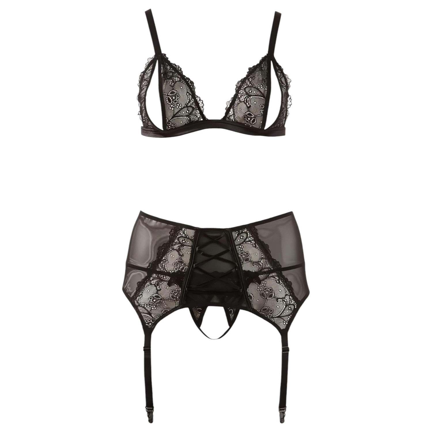 Cottelli Plus Size - Čipkasto perilo trio (črno) - XXXL