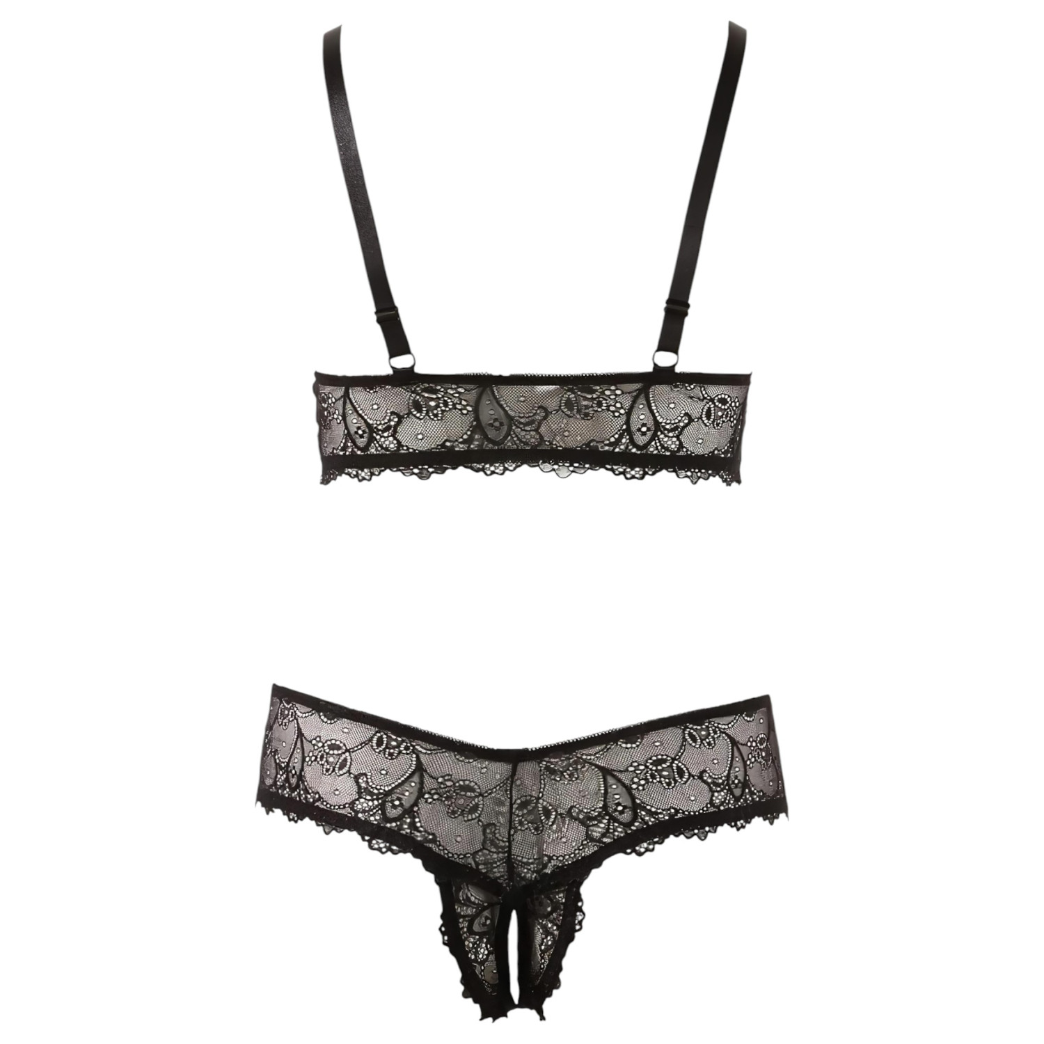 • 1x črn čipkast modrček z nastavljivimi naramnicami